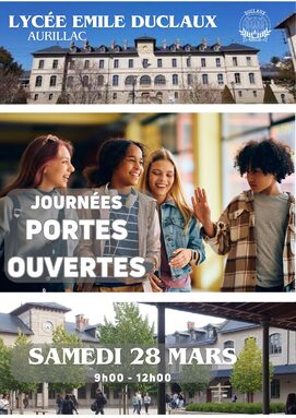 Journée portes ouvertes du lycée Emile Duclaux le samedi 28 mars 2026 de 9h à 12h